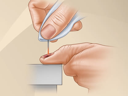 - Try to drain blood from under the nail if you have pain.