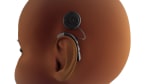 - Microphone worn behind the ear, to pick up sound.