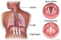 occur when a spasm contracts the diaphragm. The diaphragm is a large sheet of muscle that separates the chest cavity from the abdominal cavity. This spasm causes an intake of breath that is suddenly stopped by the closing of the vocal cords. This is what makes the "hiccup" sound.